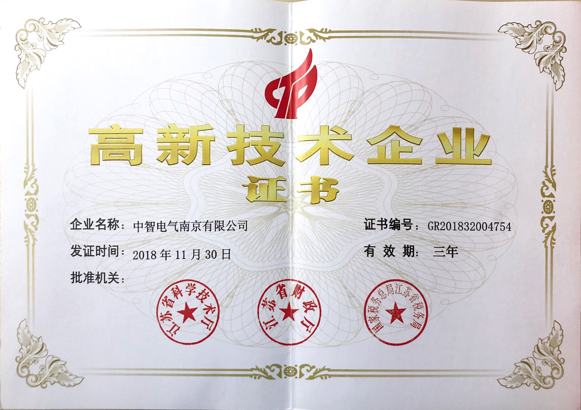 高新技術(shù)企業(yè)證書