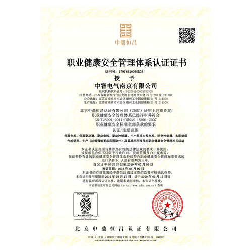 職業(yè)健康安全管理體系認(rèn)證證書